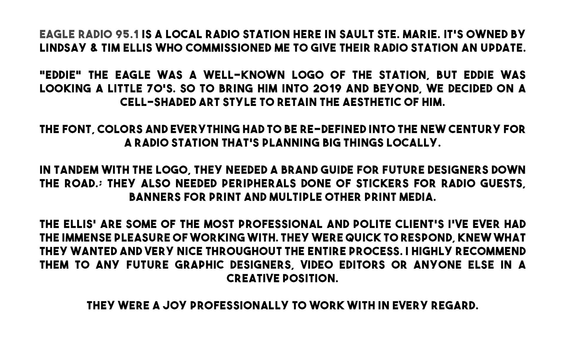 A re-branding job done for Eagle 95.1 here in Sault Ste. Marie, MI.
